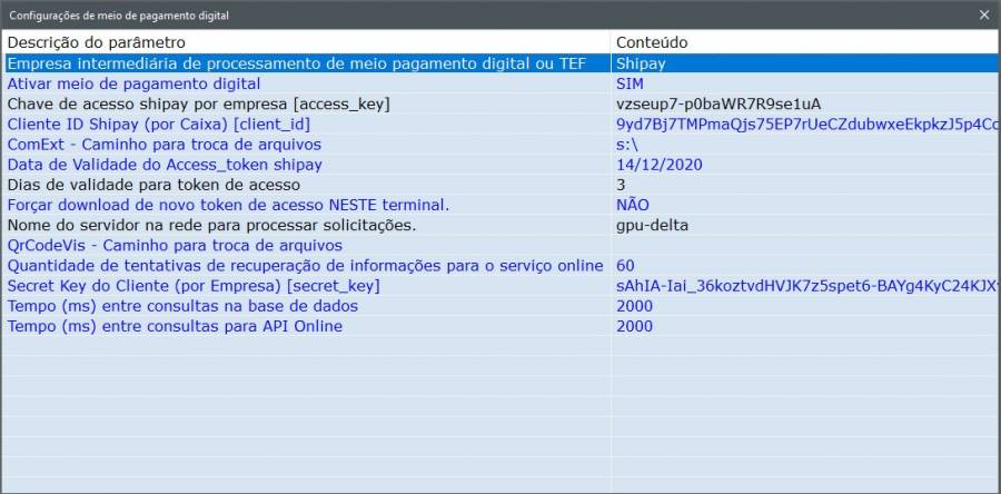 - Data de validade do Access_token Shipay - Mostra quando ocorreu a ultima data de renovação do Access_token. (Não alterar)