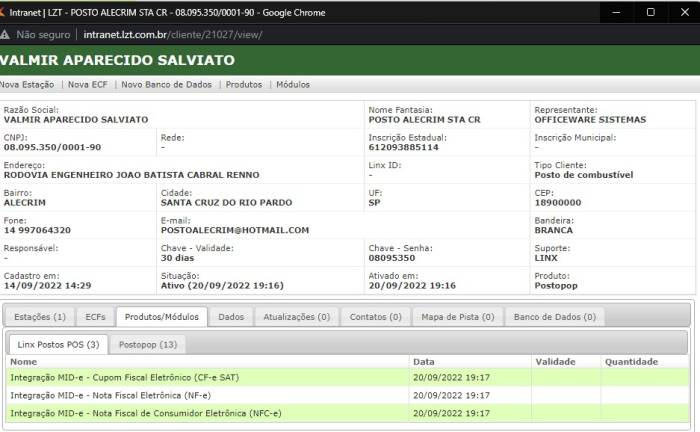 Exemplos de como os módulos aparecem configurados na intranet lzt