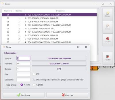 Configure aqui os números lógicos de cada bico (em caso de automação) e quais bicos são mecânicos ou digitais. Auto explicativo.