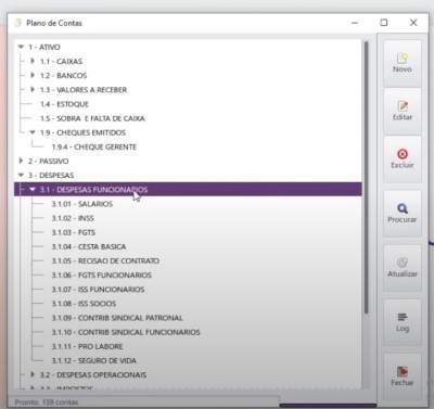 - Cadastre as despesas e suas subcontas a partir de 3.0 no plano de contas. Ex: