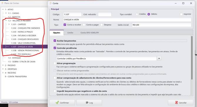 - Na aba Contas, adicionar um segundo PDV como conta já pré-cadastrada em Cadastro/Plano de Contas