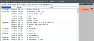 Ao consultar por Nome, CPF ou RG, será mostrado em uma coluna se o cadastro está vencido e necessita de revisão ou não.