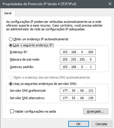 Para que funcione adequadamente em ambiente de Rede o aplicativo KRATOM é necessário que o IP local do servidor seja fixo, evitando assim que o Windows troque eventualmente o IP. Abaixo uma imagem exemplo de configuração do IP Fixo local presente dentro do adaptador de rede Windows: