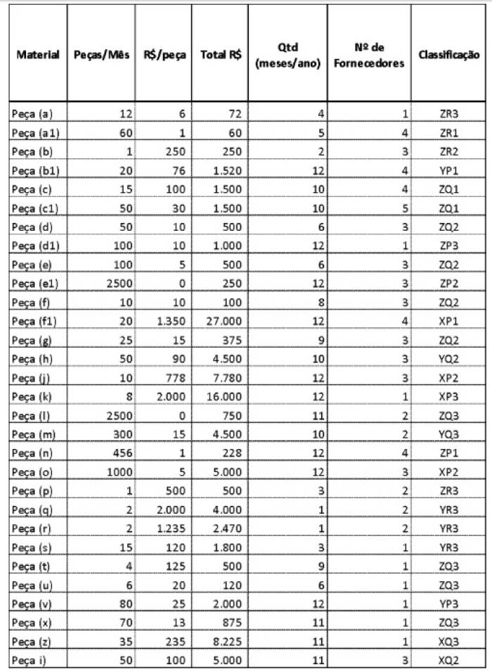 Para não gerarmos dúvida no entendimento do conceito, vou exemplificar um estudo de caso “Fictício” de análise da curva ABC, voltada à redução de estoque: