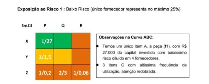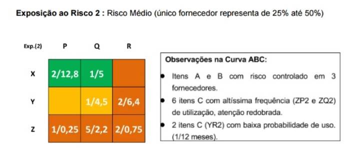 Para aprofundarmos a análise e definirmos a melhor estratégia com relação aos fornecedores e a formação de estoque, montaremos a Curva ABC por “Exposição ao Risco”: