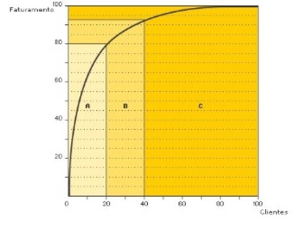 Também conhecida como Regra 80/20 — ou, ainda, Análise de Pareto — a Curva ABC é um método utilizado onde alguns pontos (nesse caso, os clientes) são organizados por ordem de relevância. Normalmente essa relevância é calculada com base na representatividade que esses clientes possuem sobre o faturamento da empresa. Essa análise diz que aproximadamente 80% do seu faturamento é proveniente de cerca 20% de sua base de clientes.
