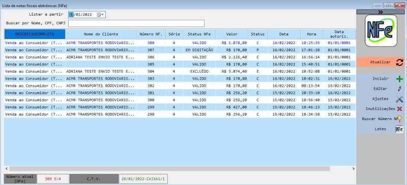 Esta janela permite gerenciar as notas fiscais eletrônicas (NFe) emitidas ou não pelo aplicativo.