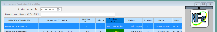 | NEC.ENVIO | A nota precisa ser enviada pela janela de LOTES. Clique no botão de mesmo nome na janela que lista as notas fiscais, depois selecione-a e depois clique em Enviar. |