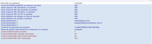 - Opções que inicial com [LinkContabil] são sobre dados estatísticos, contam a quantidade de emails que foram enviados, quantos arquivos foram exportados dos principais tipos de documentos.