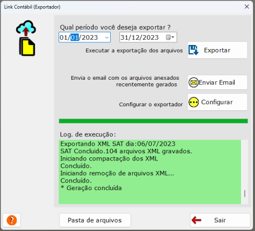 Use está opção apenas para o caso do envio não ter sido feito corretamente na geração dos arquivos. Eventualmente o servidor de email ao enviar os arquivos pode falhar o envio, então esta opção vai enviar os ultimos arquivos gerados corretamente pelo botão Exportar.