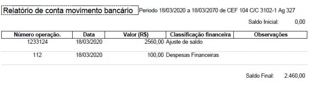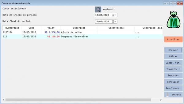 - Emite um extrato rápido do período selecionado na janela com detalhes dos lançamentos