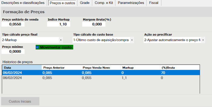 O detalhamento sobre os campos relativos ao precificador você pode encontrar na seção Formação de Preços do cadastro de produtos, clique aqui.