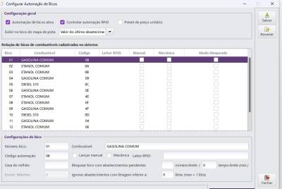 Configure aqui os números lógicos de cada bico (em caso de automação) e quais bicos são mecânicos ou digitais. Auto explicativo.